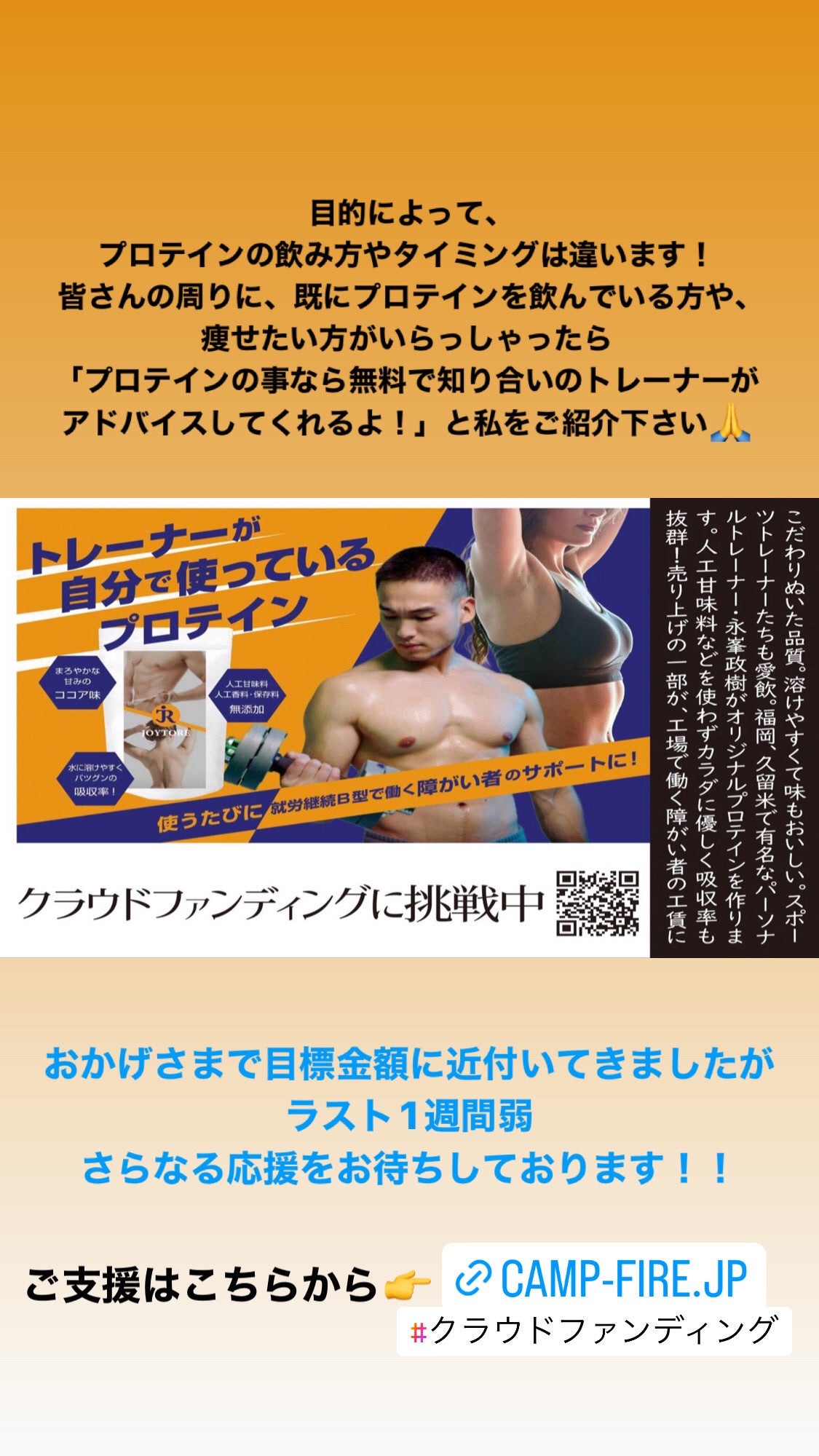 8/1から始まったJOYTOREオリジナルプロテイン製作&就労支援の為のクラウドファンディング挑戦!
