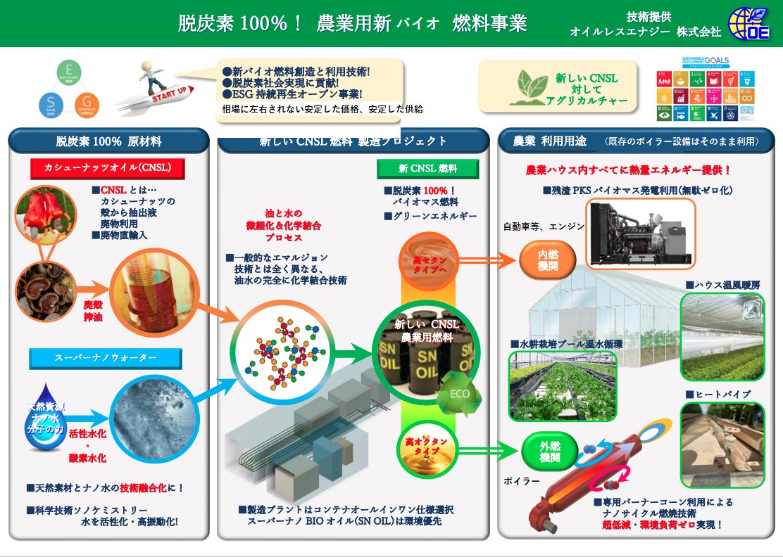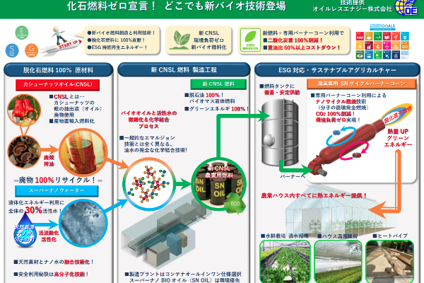 両社については、目的が国内外の事情と背景が別ですが、カシューナッツのバイオ燃料化は同じです。