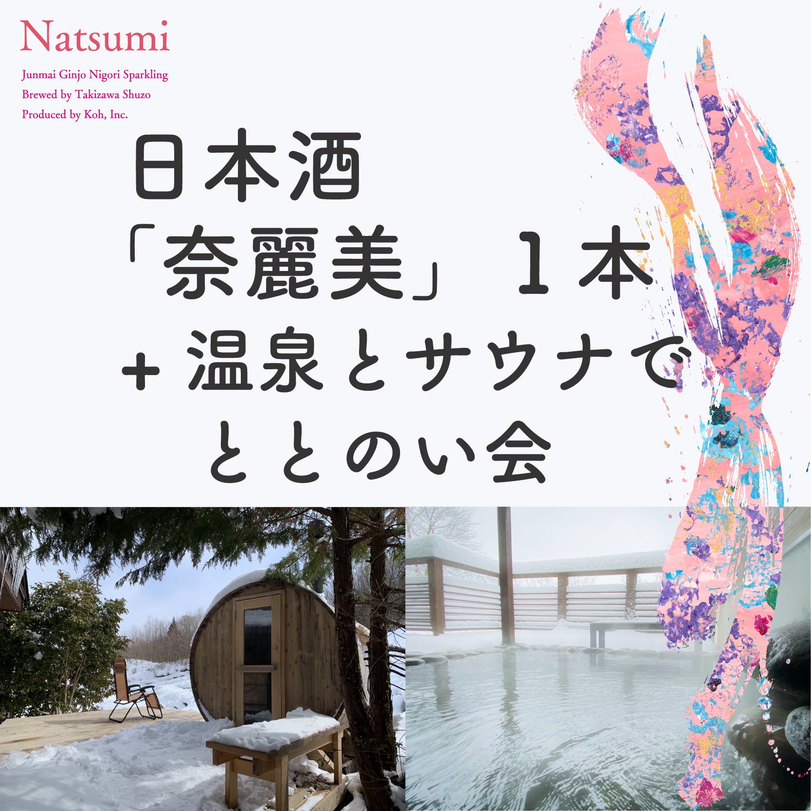 オリジナル日本酒「奈麗美(なつみ)」(1本720ml、クール便送料込み)と、サウナ・温泉施設に参加できる権利をお楽しみください。