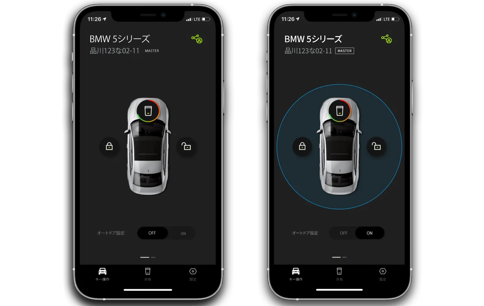 オートドア機能をアプリ内で選択すると、所有者がドアに近づくだけで自動的にドアの開錠、