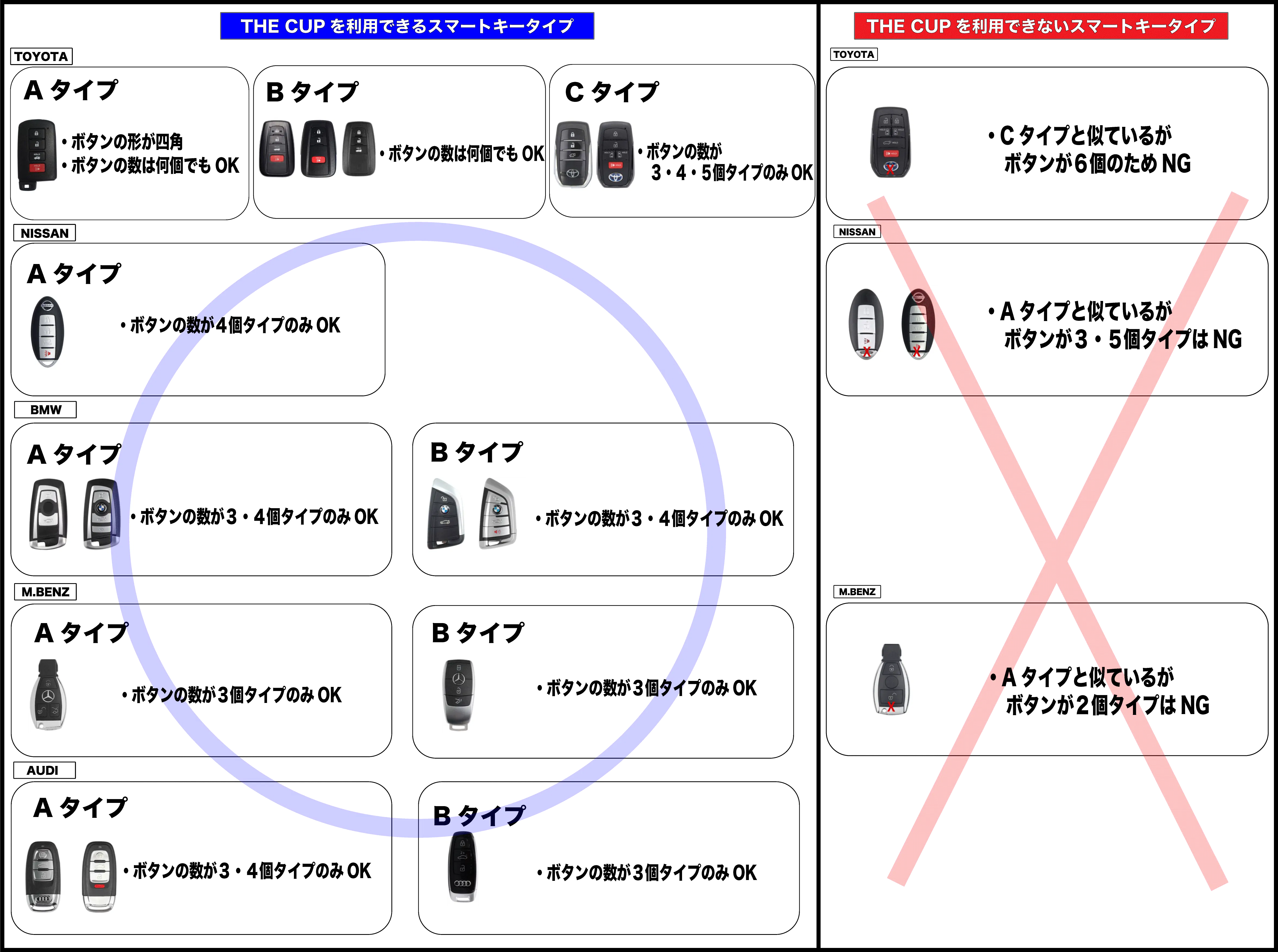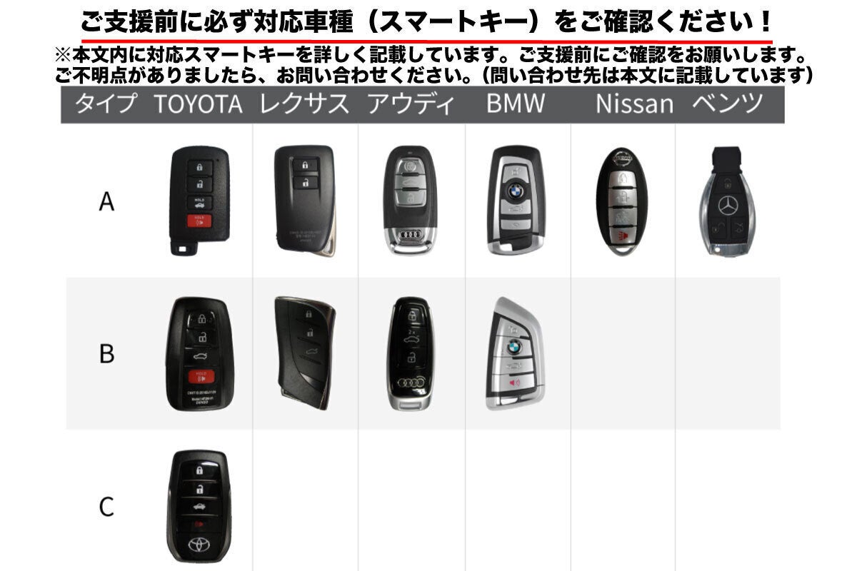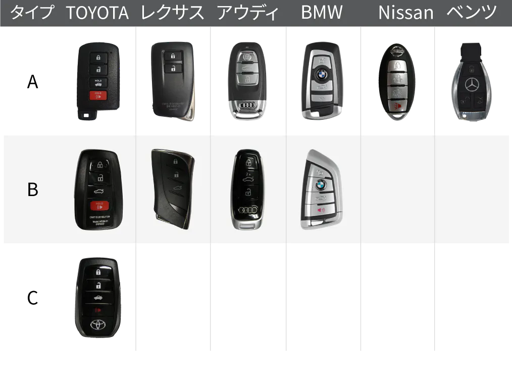 ※Nissan Aタイプは4ボタン、ベンツ Aタイプは3ボタンが付いてるタイプのみ対応できます。