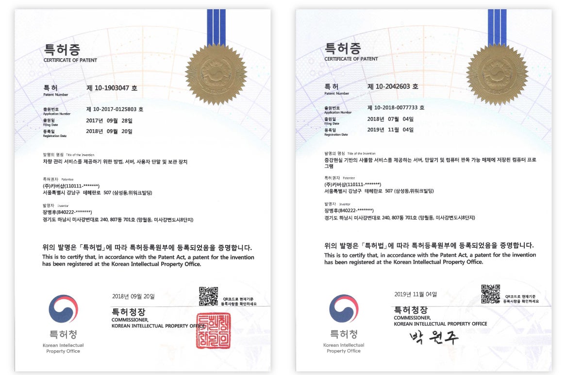 韓国特許:第10-2072398号、第10-209583号