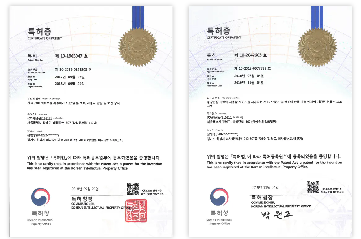 製品の技術力が認められ、韓国では第10-2072398号、第10-209583号特許を取得した、信頼できる製品です。