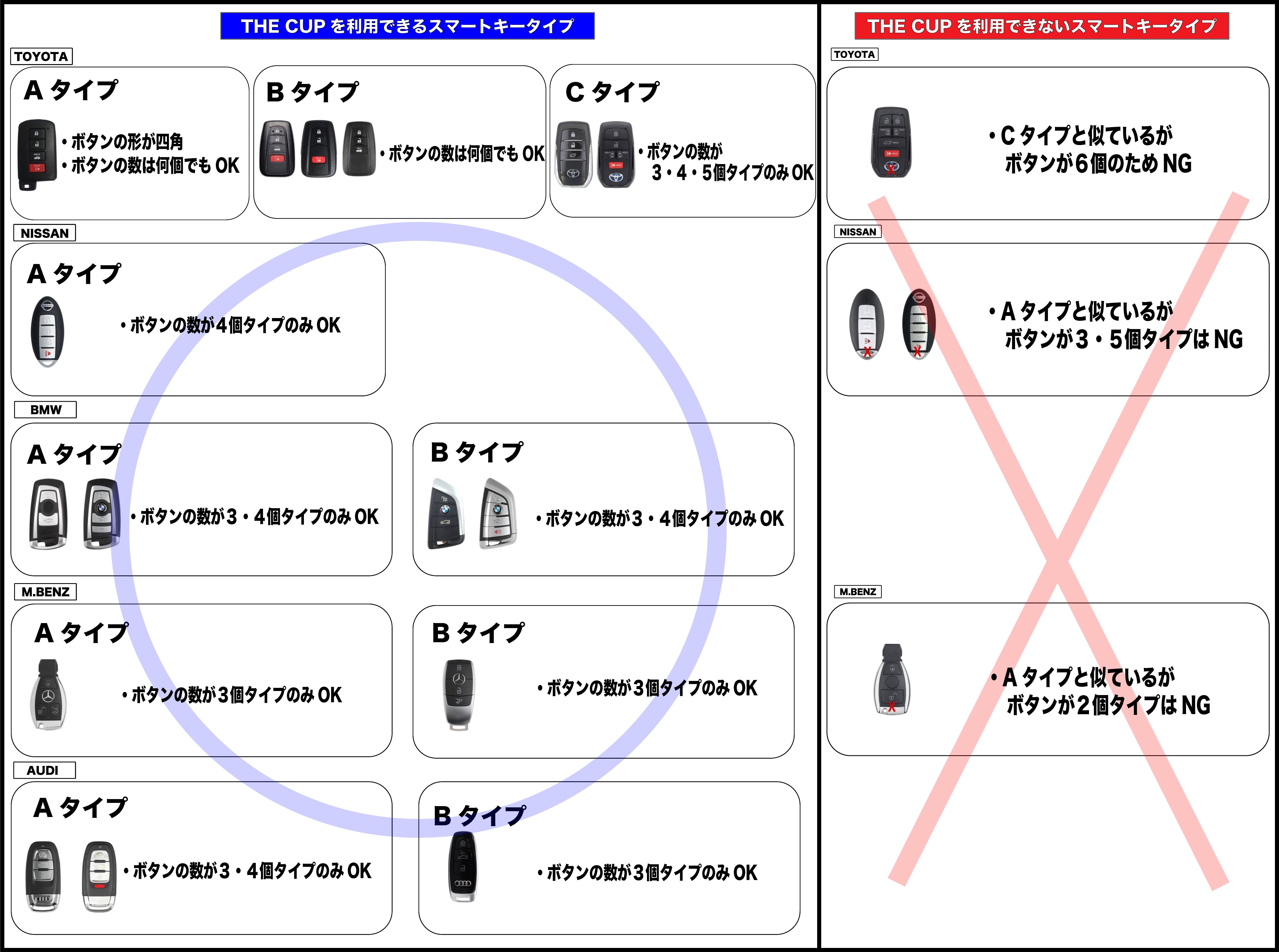 THE CUPは、⬇︎に表示されているスマートキー以外も対応していることがあります。