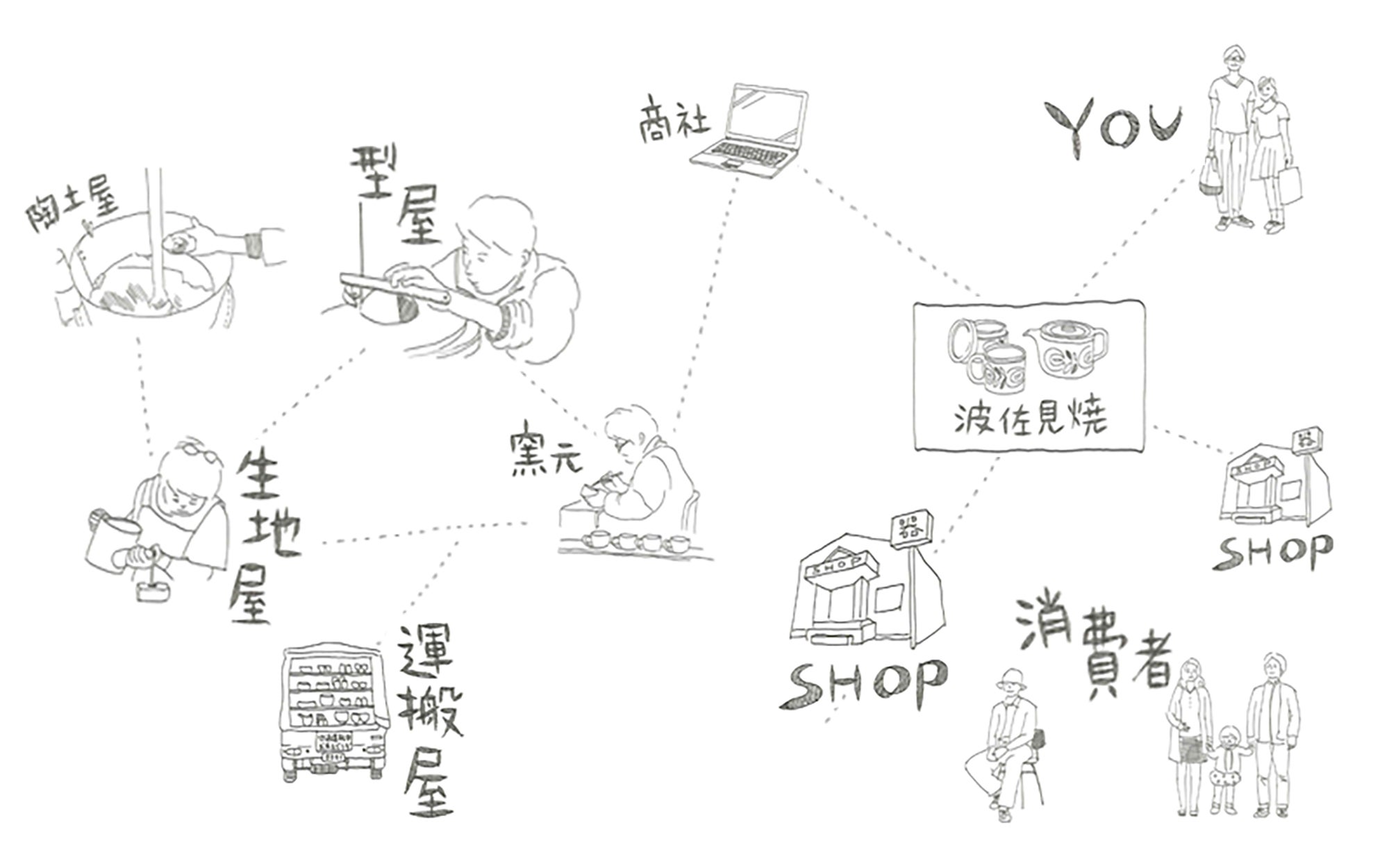 それぞれに高い技術やノウハウを持った職人が、それぞれ独立した事業者でありながら連携して波佐見焼を製造してきました。(現在も分業制がそのまま続いています。)