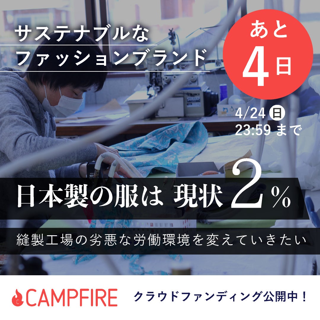いよいよ本日が最終日となりました!日本製の服・モノづくり・技術そこにはたくさんの課題がありますが、その中でトレーサビリティを大切に地道に頑張り続ける縫製工場を応援したい。達成まであと少しです。気になっていただけたら、プロジェクトをぜひ覗いてください。受付は本日23時59分までです!