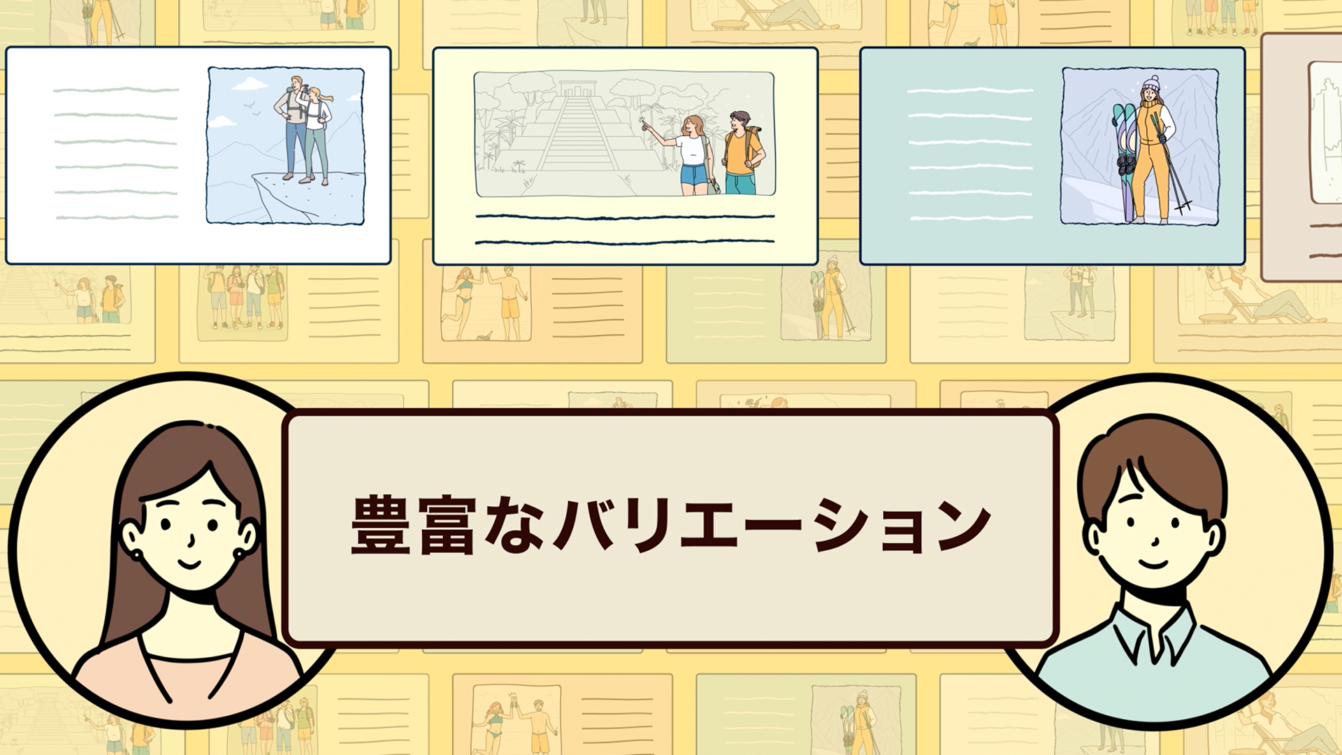 上の動画のような構成で写真部分、メッセージ部分を変更するだけで簡単に制作することが可能となっております!