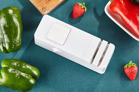 研ぎ器の上には正方形の砥石が搭載されています。これを使えば、手で包丁を研ぐことも可能です。