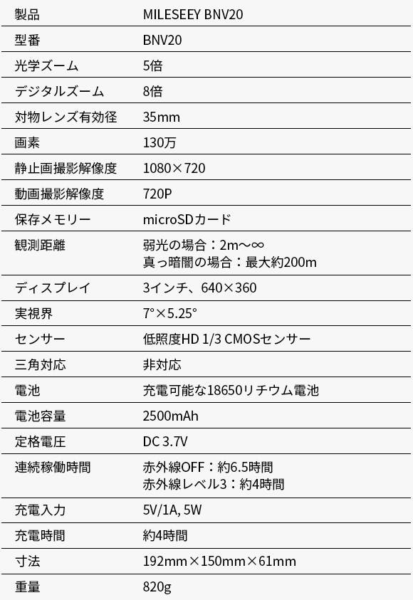 「MILESEEY BNV20」は望遠鏡と暗視スコープが一体になった昼夜兼用の双眼望遠鏡です。