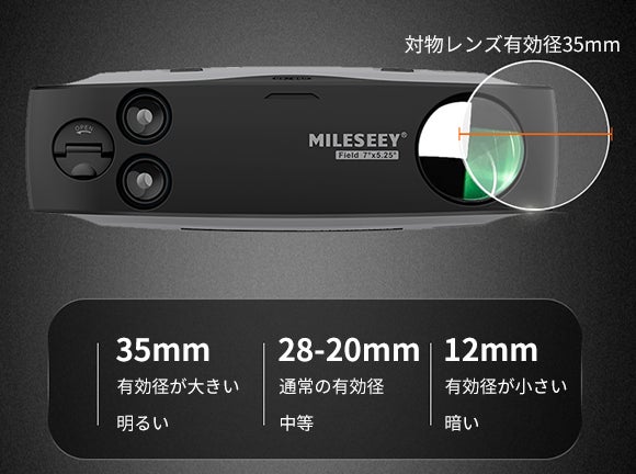 対物レンズの有効径は35mmになるため、集光力が強く、より明るく観測することができます。