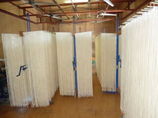 箸掛けというなかなか力のいる作業によりさらに何時間もかけて手延べしていきます。