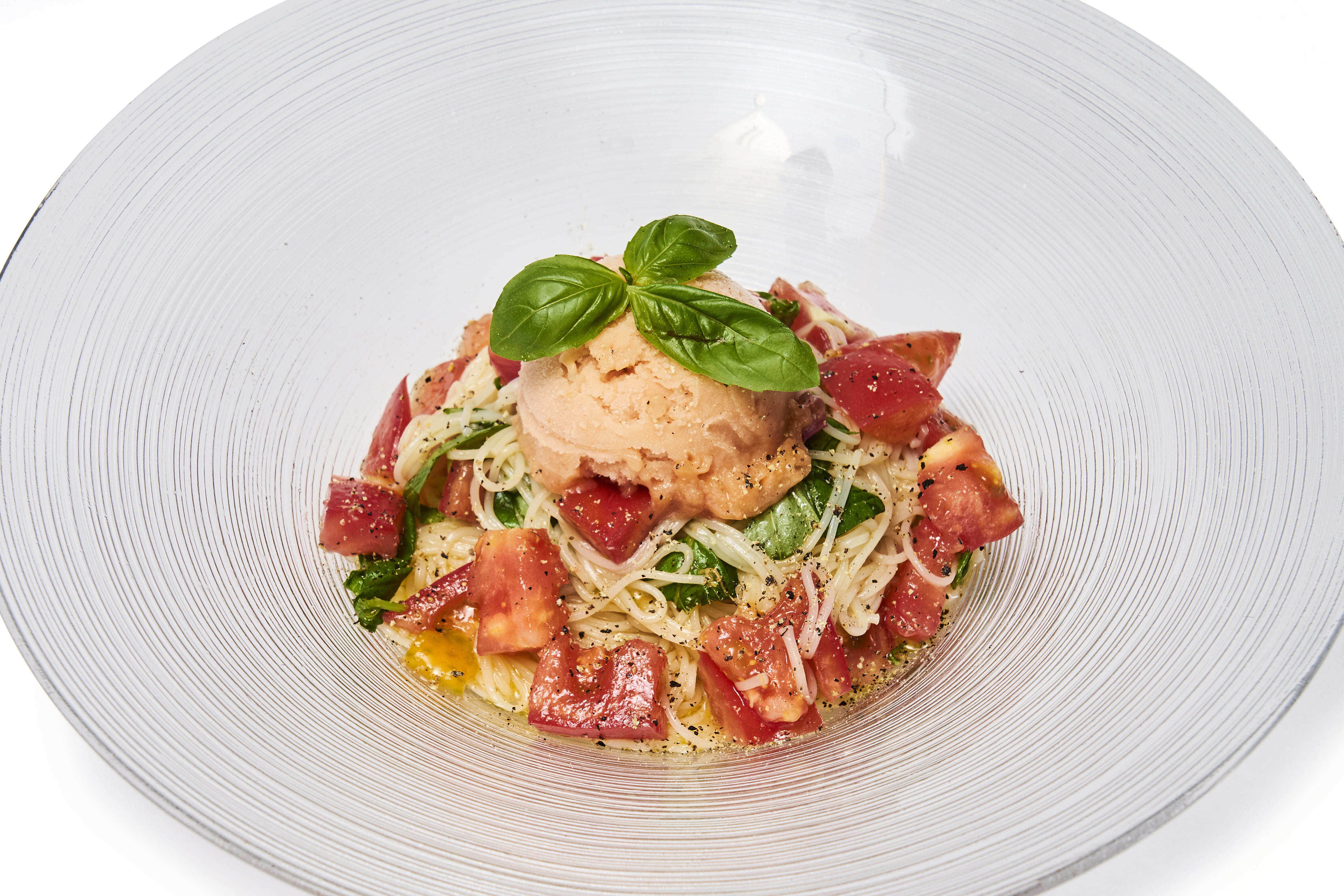 日比谷店「トマトザクザク冷製そうめん〜醤トマトソルベを添えて〜」