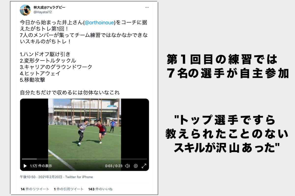 2021年始め、私、林大成がラグビープレーヤーとしてのレベルアップを求め、信頼する井上正幸さんに個人トレーニングを頼んだのが、「らぐびーくえすと」誕生のきっかけです。