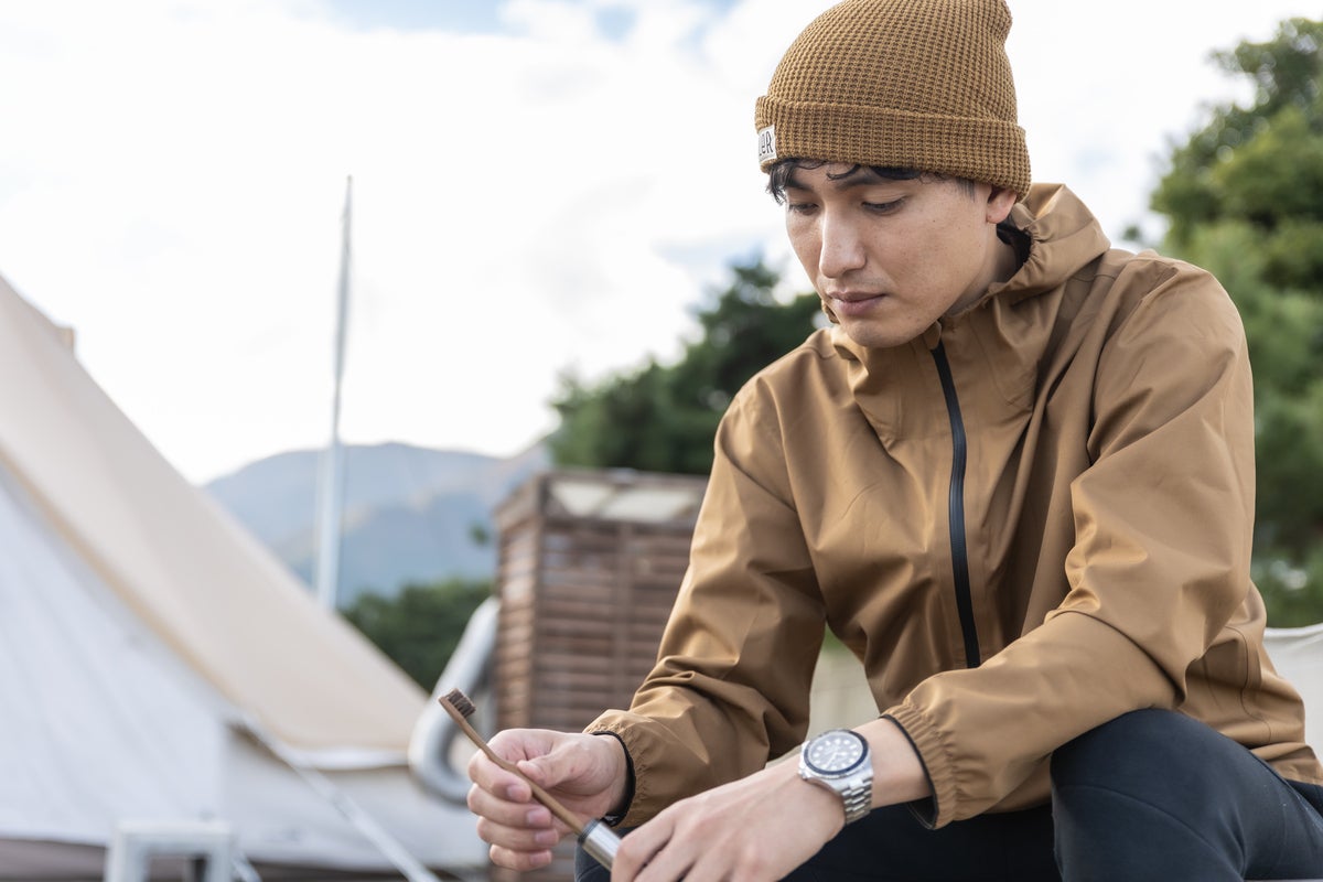 屋外での気持ちいい歯磨きは、キャンプでしか体験できないから
