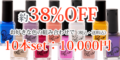 従来のマニキュアやジェルに含まれる有機溶剤や顔料は使わず、法定色素で色付けしているので