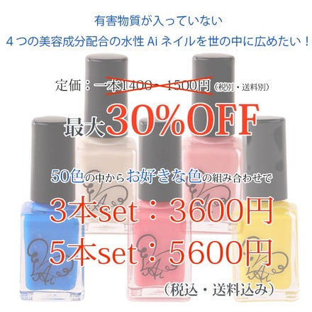 『4つの美容成分配合の身体に優しいAiネイル』を応援くださりありがとうございます。