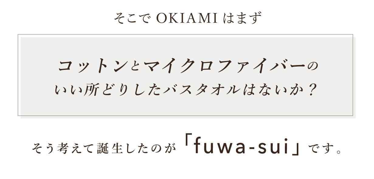 fuwa-suiの吸水性・肌触り・速乾性の3拍子が揃ったタオルをぜひお試しください。