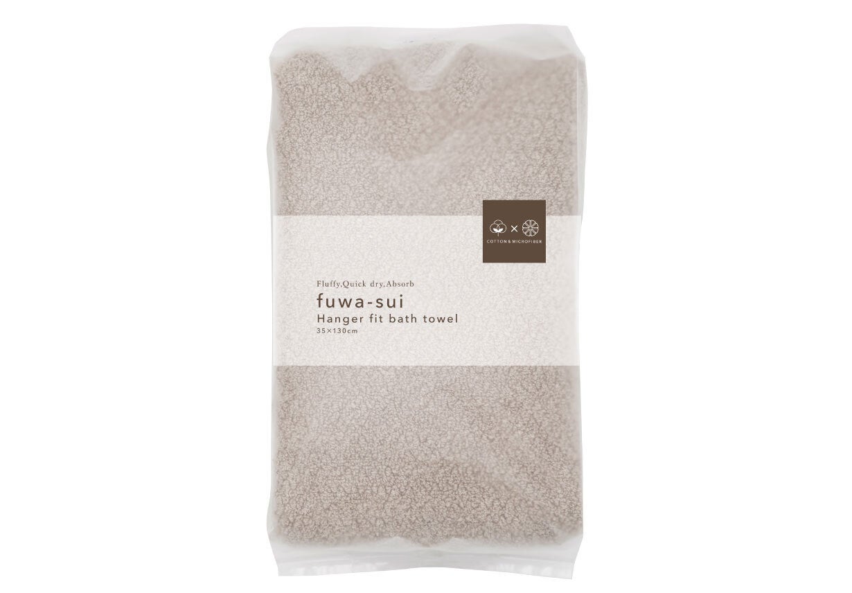 fuwa-suiの吸水力だからこそ1サイズ小さいバスタオルでも十分利用する事ができます。ハンガーフィットバスタオルは、幅がハンガーサイズに設計されています。
