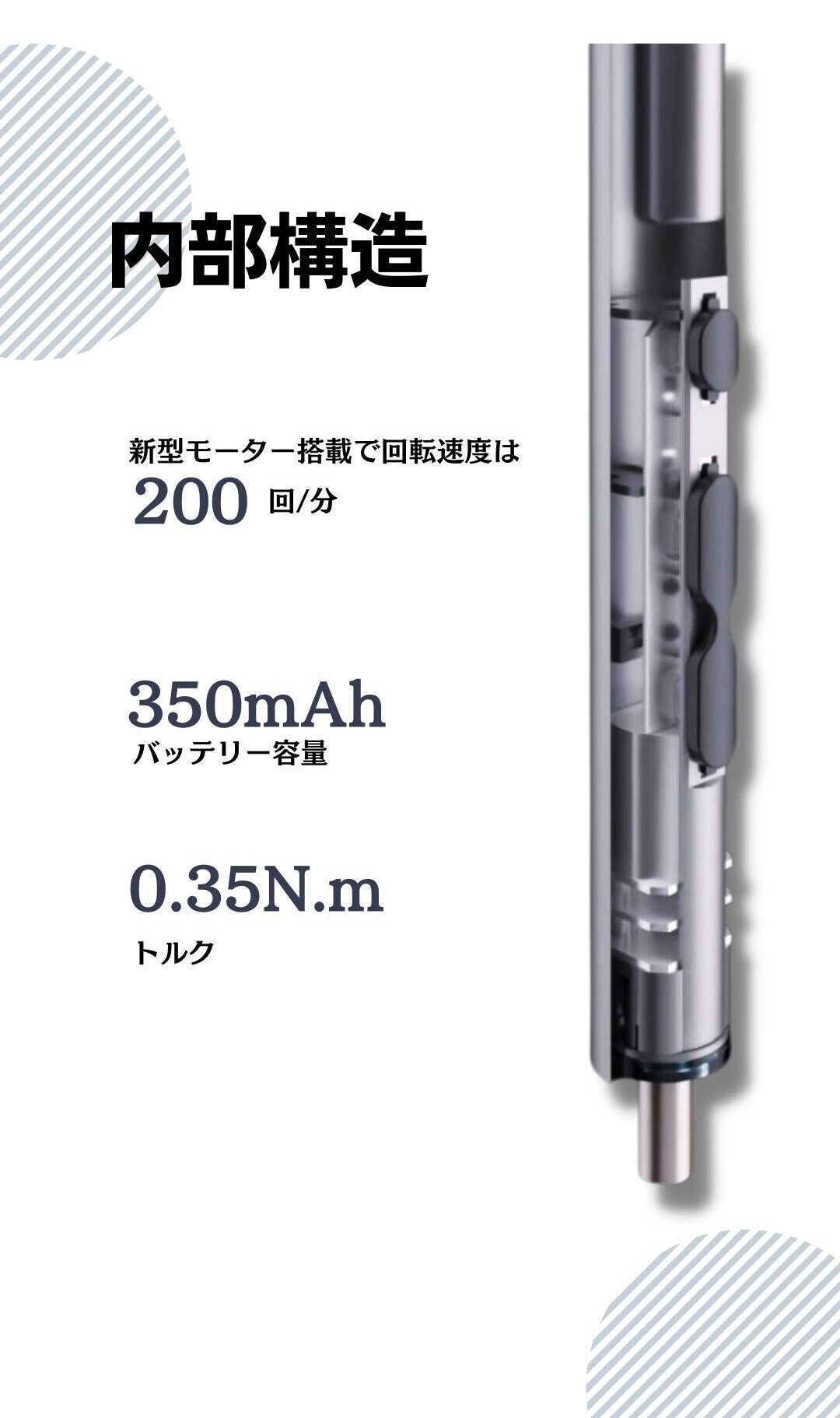 ドライバー本体の重さは約卵1個分。直径16mmのスリムなデザインなので、ペンのように簡単に握れる仕様です。