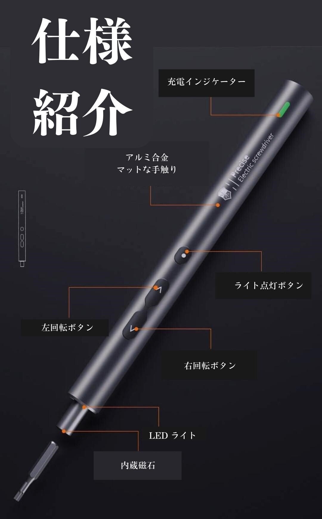 ③ 右回転・左回転・ライト点灯、3つのボタンで簡単操作できる電動精密ドライバー。