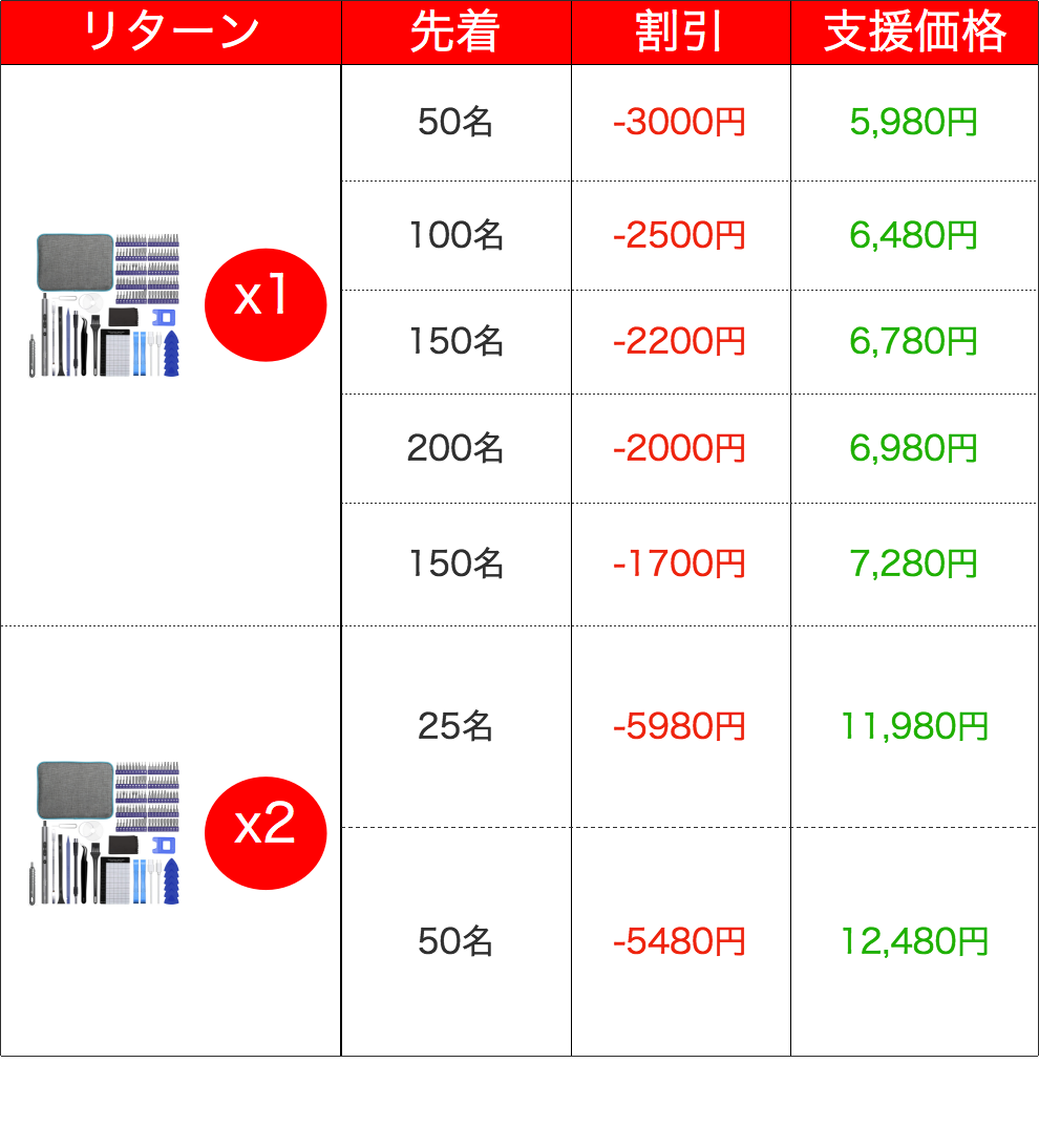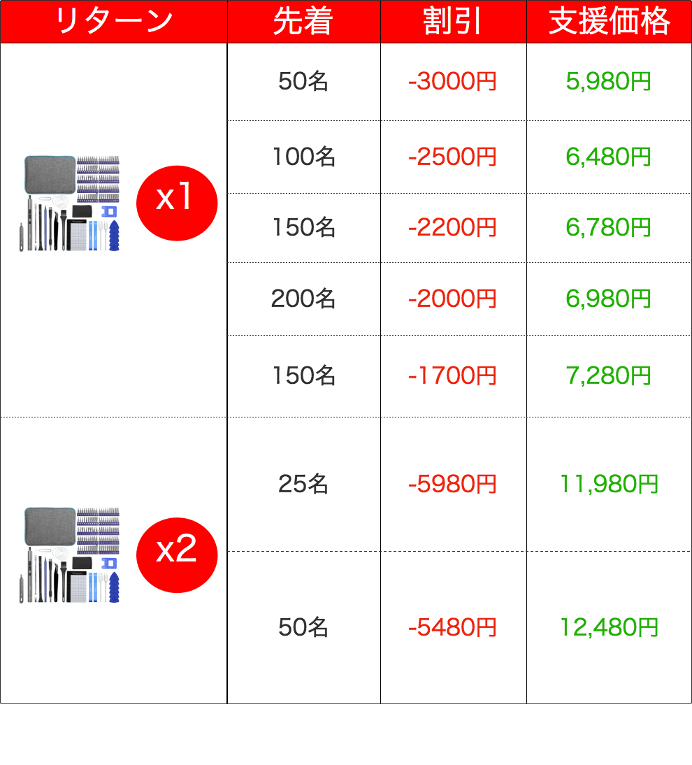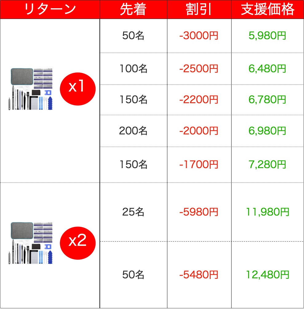 ※想定を上回る皆様からご支援を頂き、量産体制を更に充実させることができた場合、一般販売価格が予定価格を下回る可能性がございます。