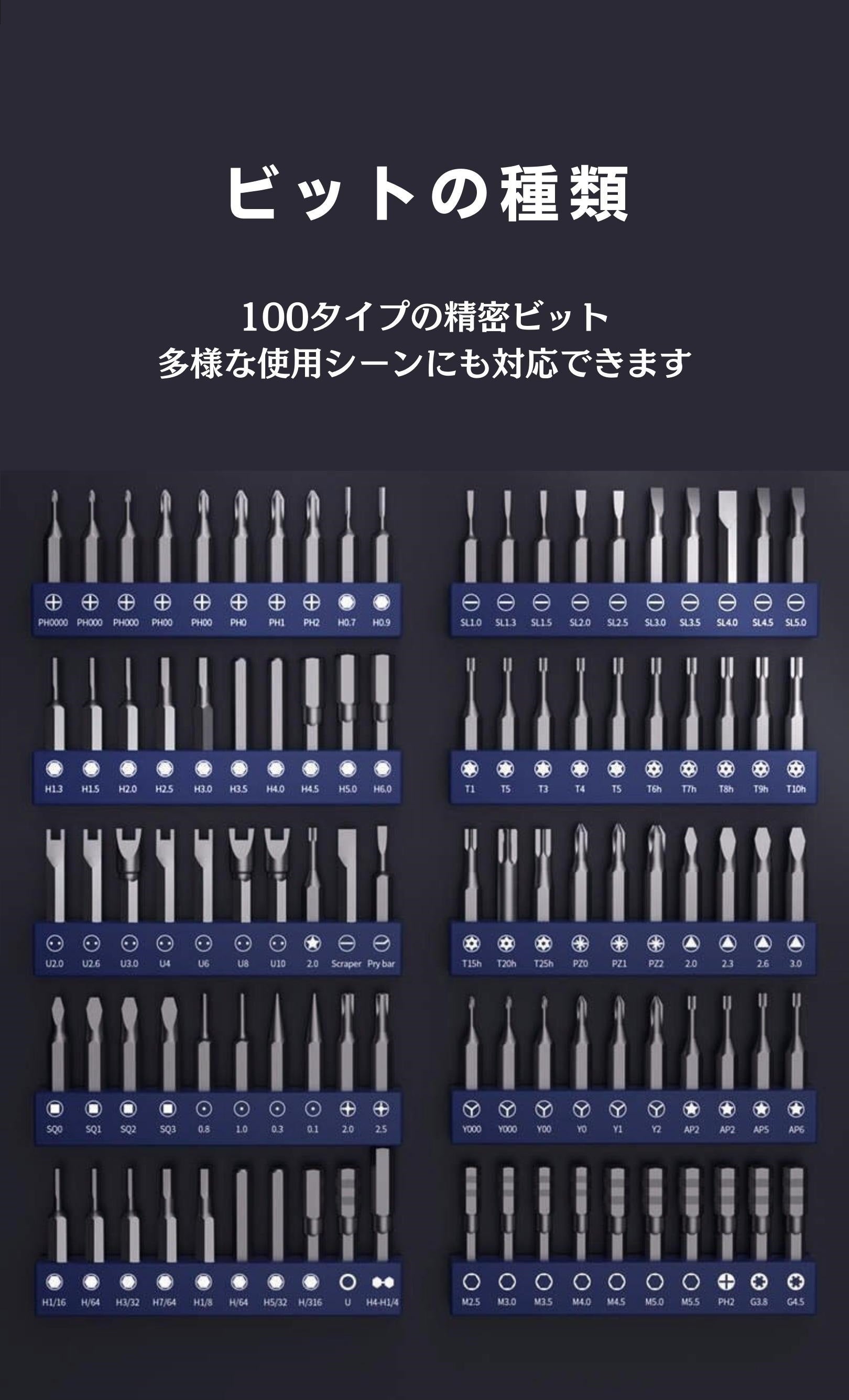 ①100種類の高精度ビット + 20種のマルチツール付属。