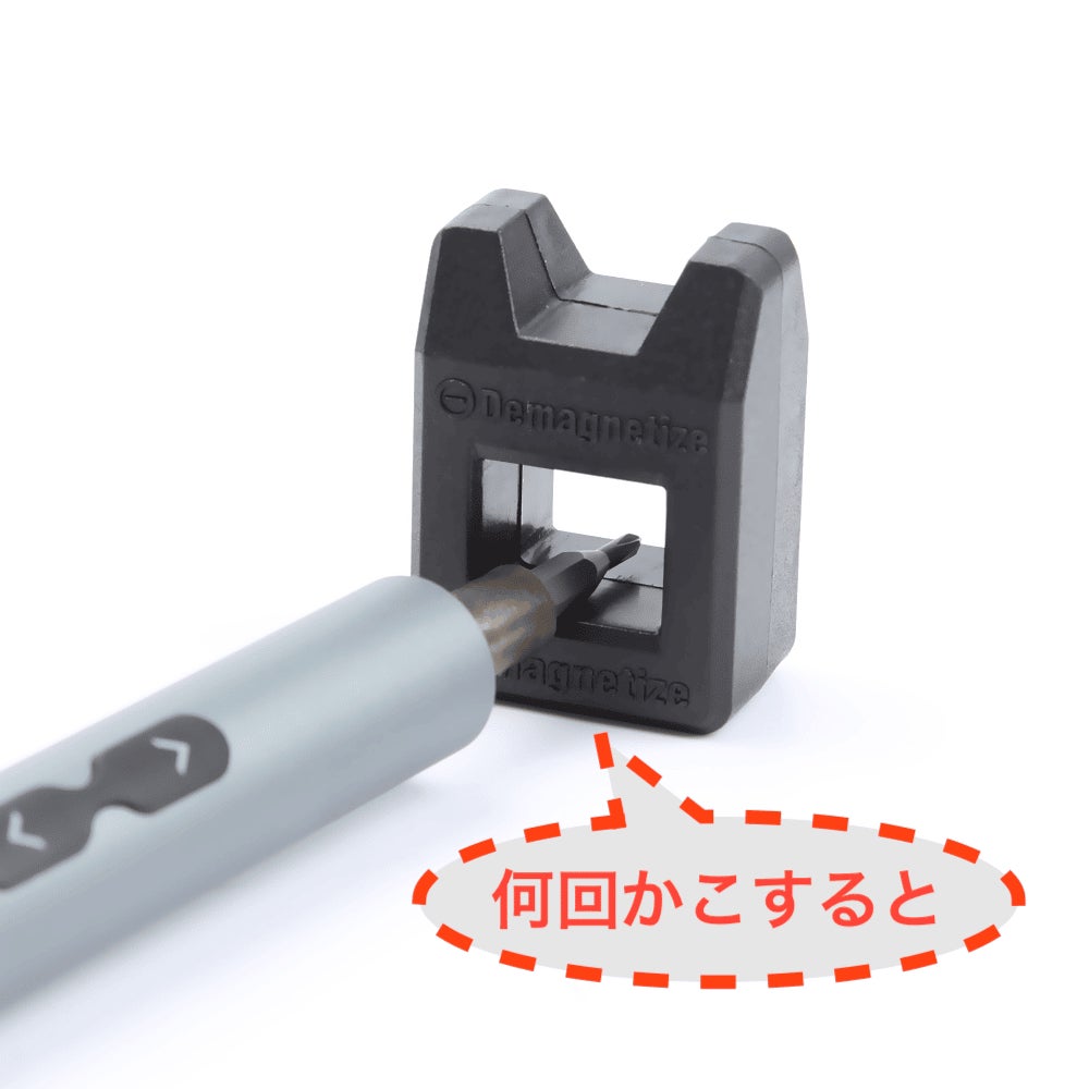 脱磁:上のマイナス側にドライバーの先端を数回こする。