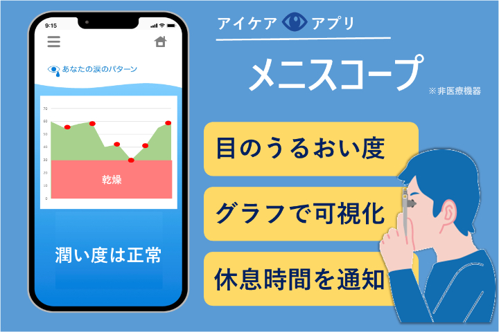 「メニスコープ」なら、目が乾燥する前にアプリが教えてくれるから安心