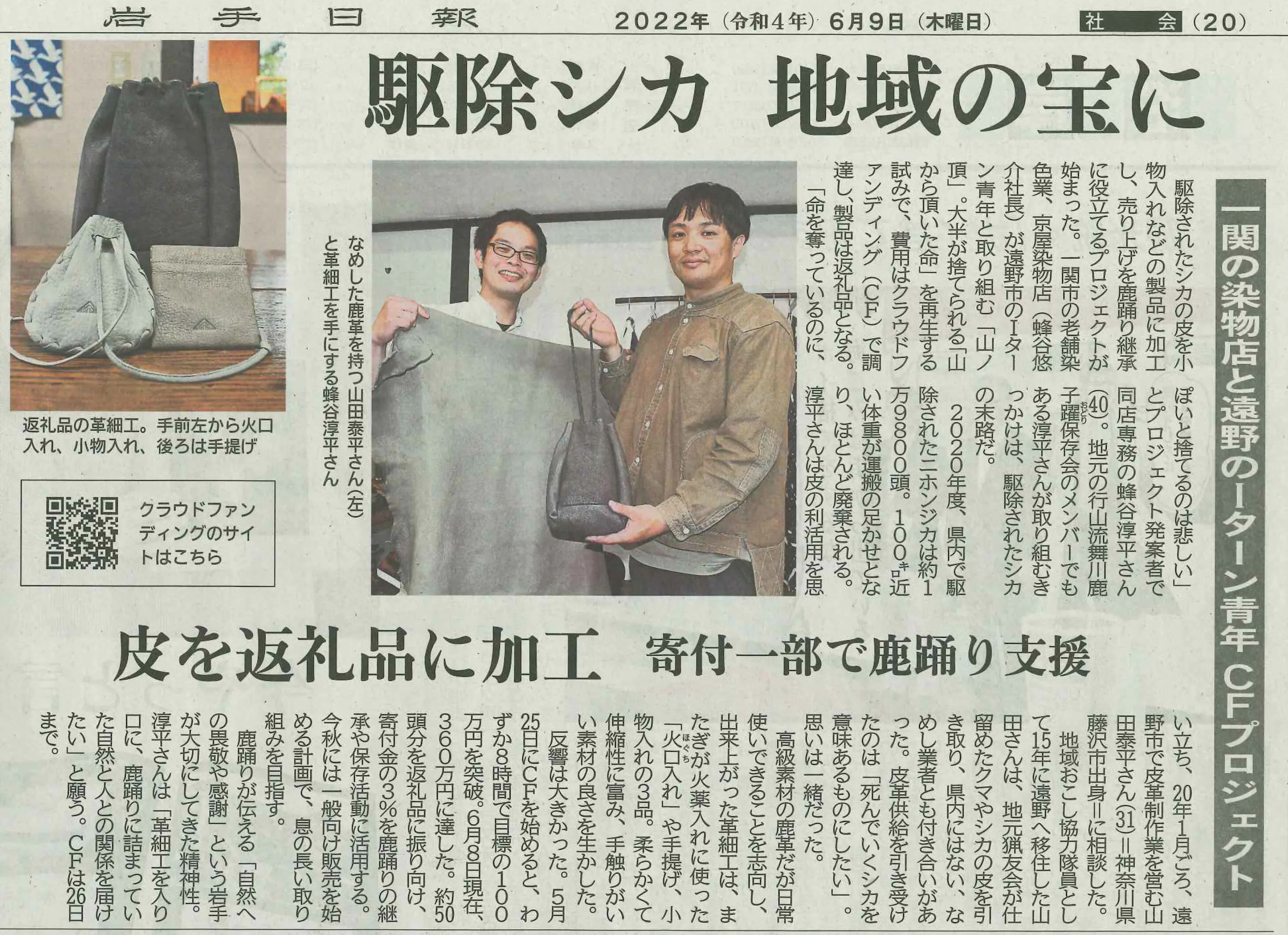 岩手日報の社会紙面の中で、「山ノ頂」を紹介いただきました!