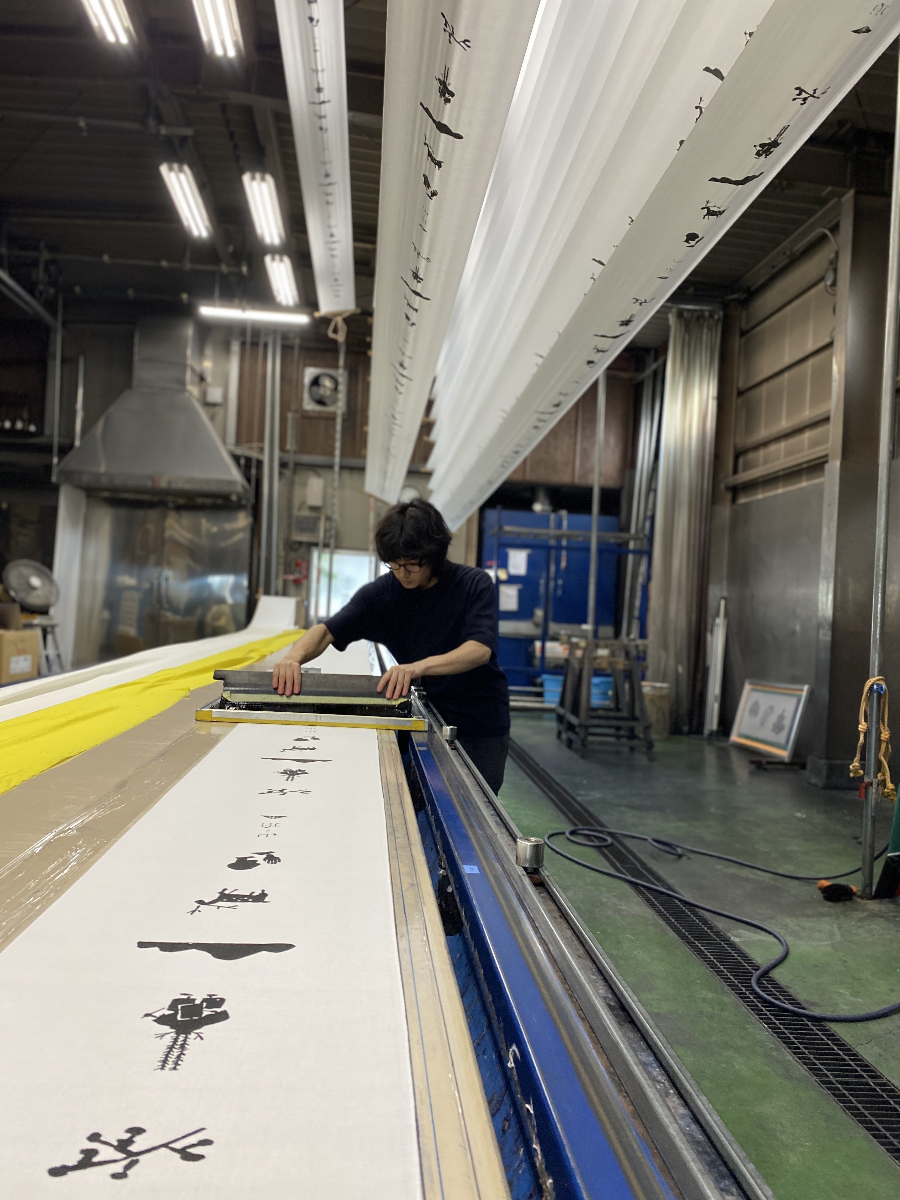 染工場では、『山ノ頂』手拭いを絶賛染色中です。