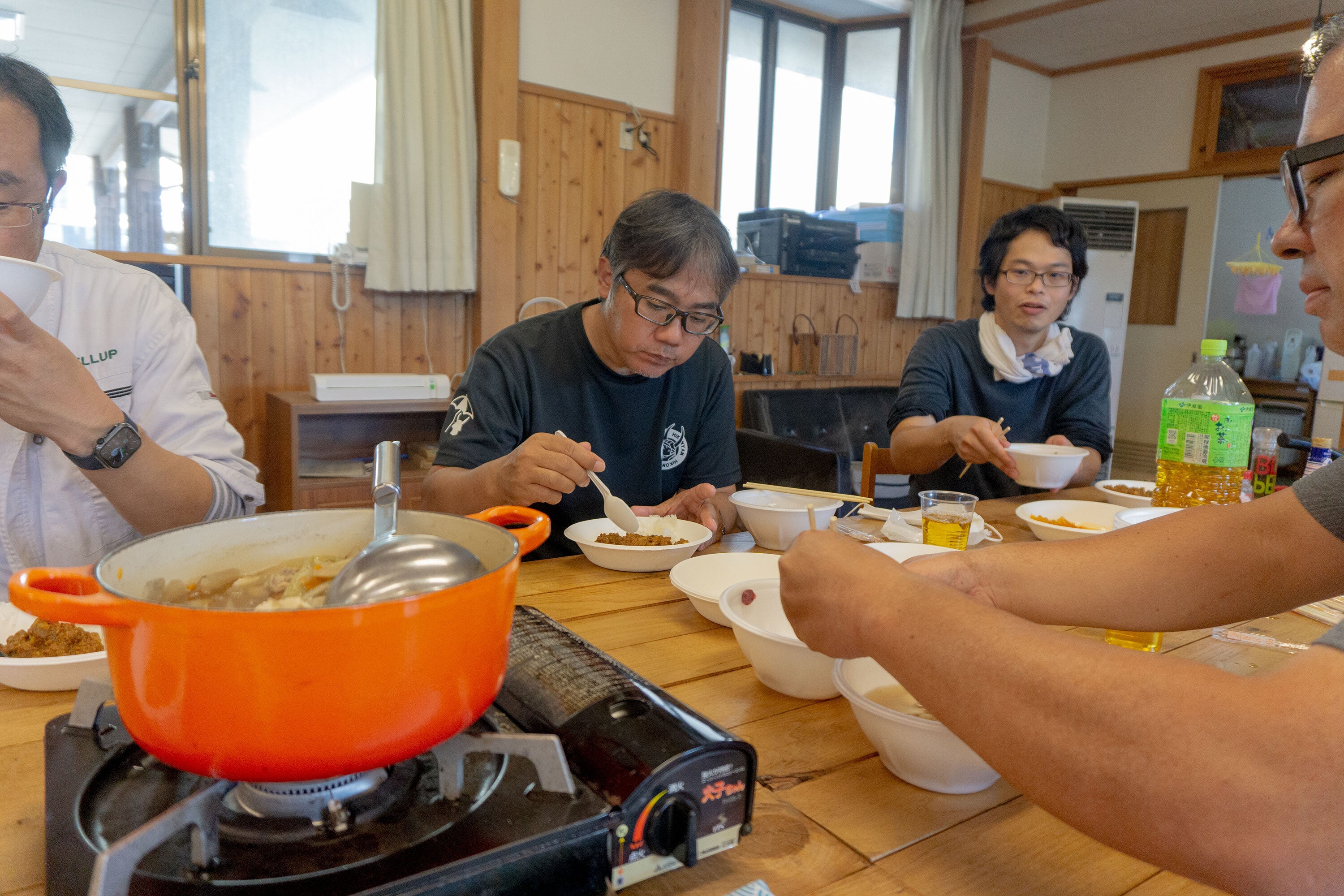 昼食は『芋の子汁』と鹿肉カレーと鹿の焼き肉