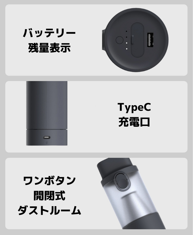 そのため、掃除機として使用だけでなく、スマホの充電器として使用することができます!「3in1車載掃除機」 があれば、モバイルバッテリーを買わなくても大丈夫です。