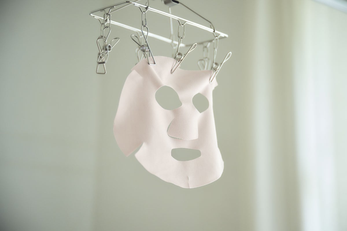 ⑤ フェイスシートを広げた状態で、風通しの良い日陰で干します。完全に乾燥させてから保管してください。