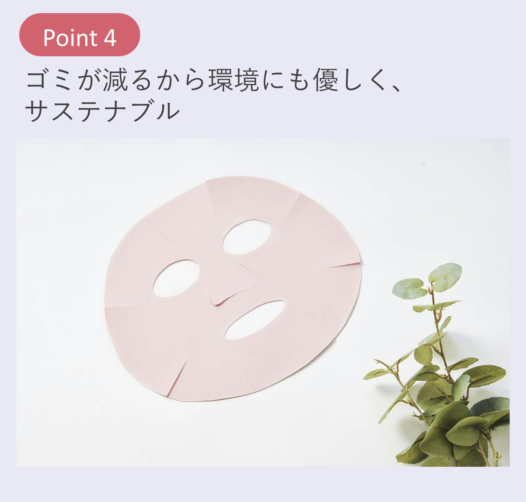 今回の遠赤外線フェイスケアシートは、従来の使い捨てフェイスパックシートとは異なる新しいアプローチで、手軽にお顔のお手入れができる商品となっています。