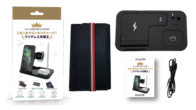 ミスターカード株式会社プロジェクト担当です。今回のプロジェクトは複数のAppleデバイスを使っていて複数の充電器を1つにまとめて持ち運びやすくしたい!という思いもあり、iPhoneやAirPods、Apple Watchなどワイヤレスで充電できるメリットを生かせるワイヤレス充電王をリリースいたしました。詳しい商品説明はページをご覧いただけますでしょうか。