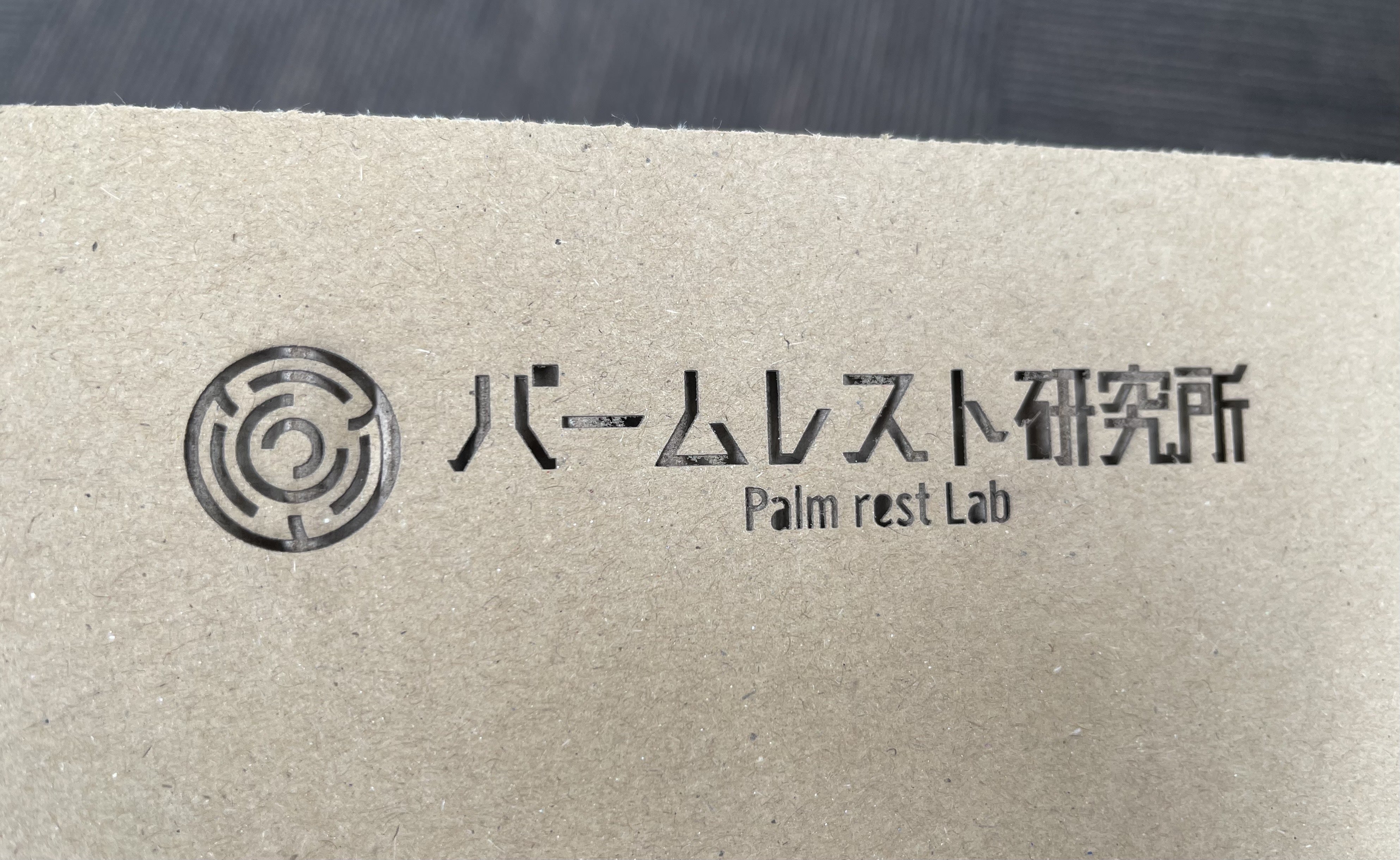 配送に使用する段ボールには、「パームレスト研究所」とレーザー彫刻されています!パームレストのサイズにピッタリなダンボールで配送しますので、お楽しみに!