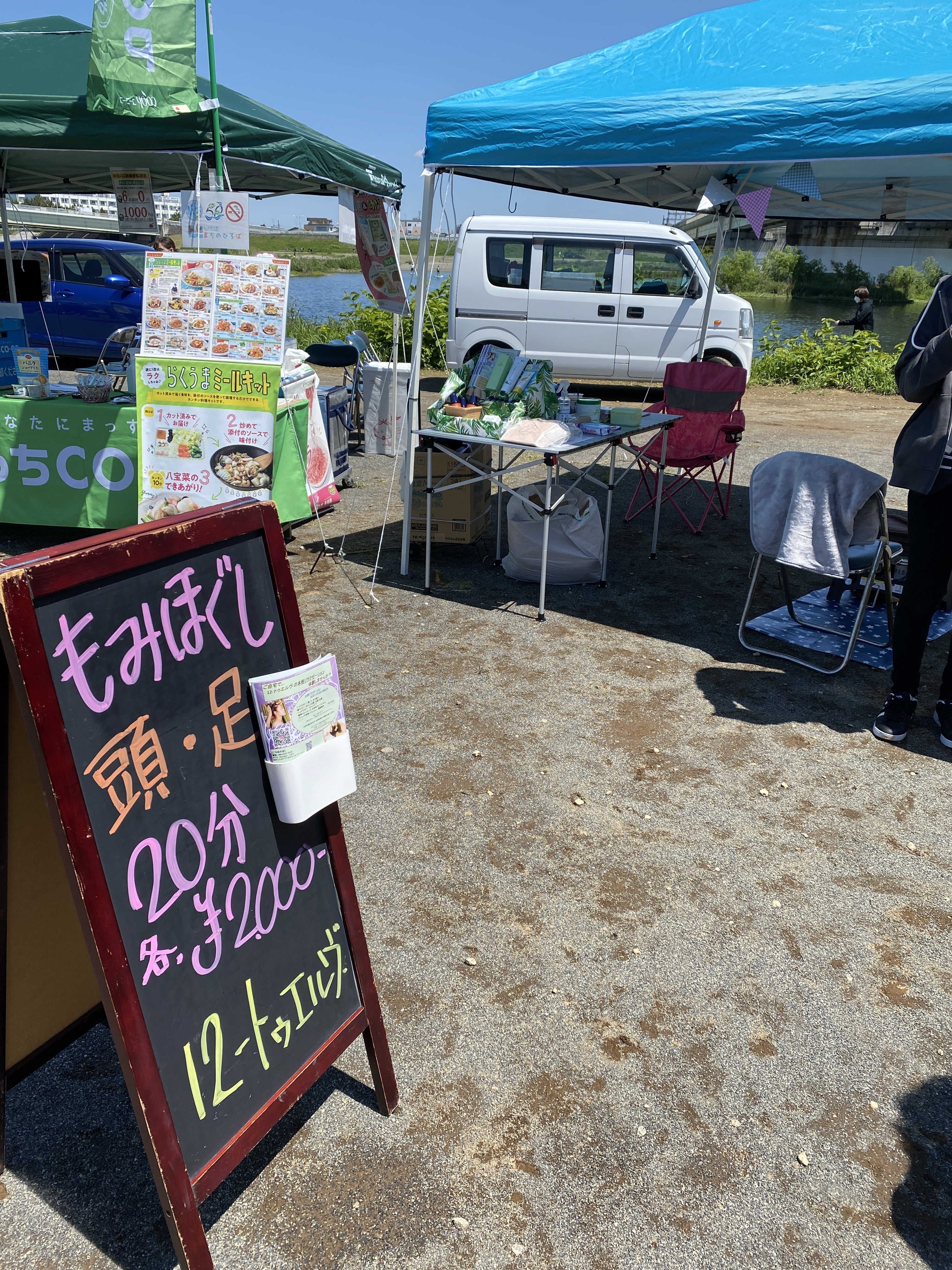 こんにちは!GWの5/3に『登戸たまがわマルシェ』に参加してきました(^^)写真は準備中のものです☆地域を盛り上げるためのイベントに今年も参加できたことに感謝です♪今年はMikuも一緒に参加となりました(^^)多摩川河川敷で青空リラクゼーション!ヘッドセラピーとフットリフレクソロジーの同時施術!満員御礼にて施術をお断りしなければいけない事態に(+_+)もっとセラピストがいたらよかったな;と思ったり…もちろん『休憩処 八重』のPRも沢山できました(*^^)vサブスクいいね!頑張って!と嬉しいお言葉をいただいたり♪もっと沢山アピールできるよう頑張ります(*´▽`*)野本