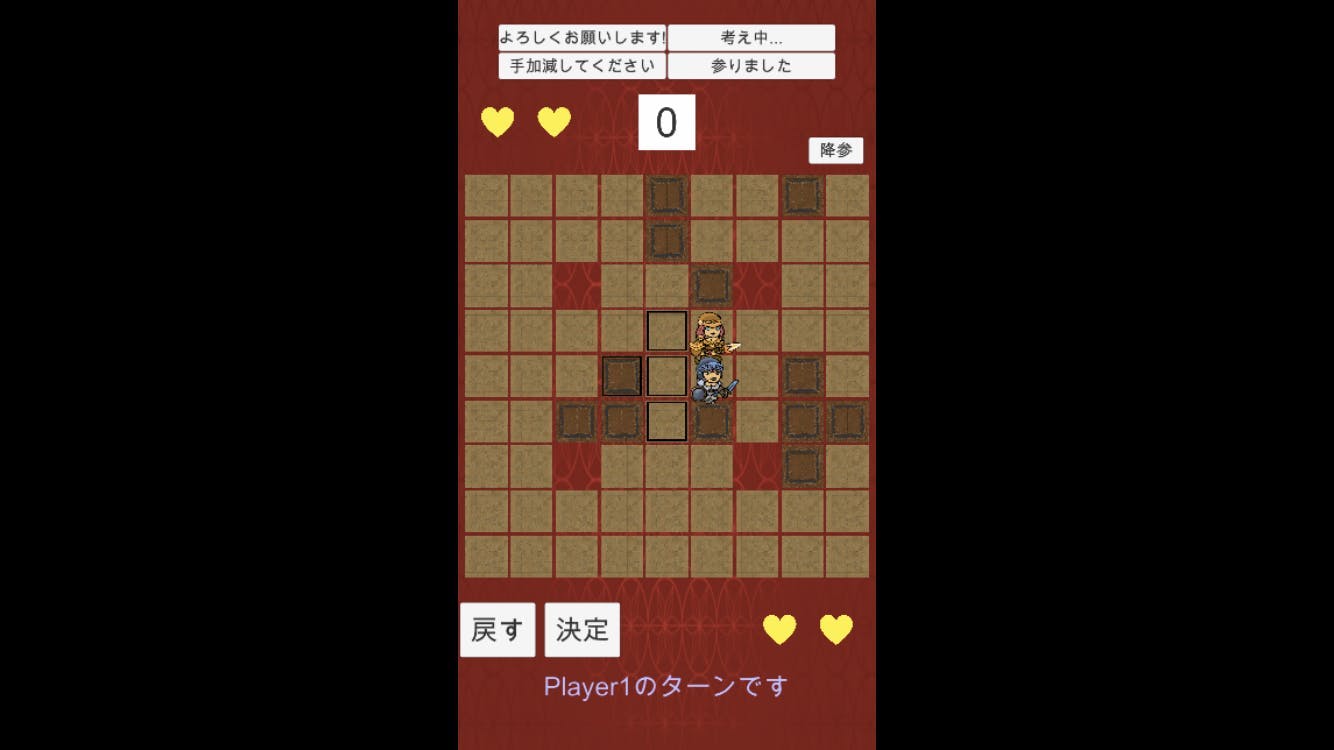 ・相手に攻撃し、HPを削り切るか、相手の周りを「通行不可能マス」にして、詰ませることができれば勝利です!