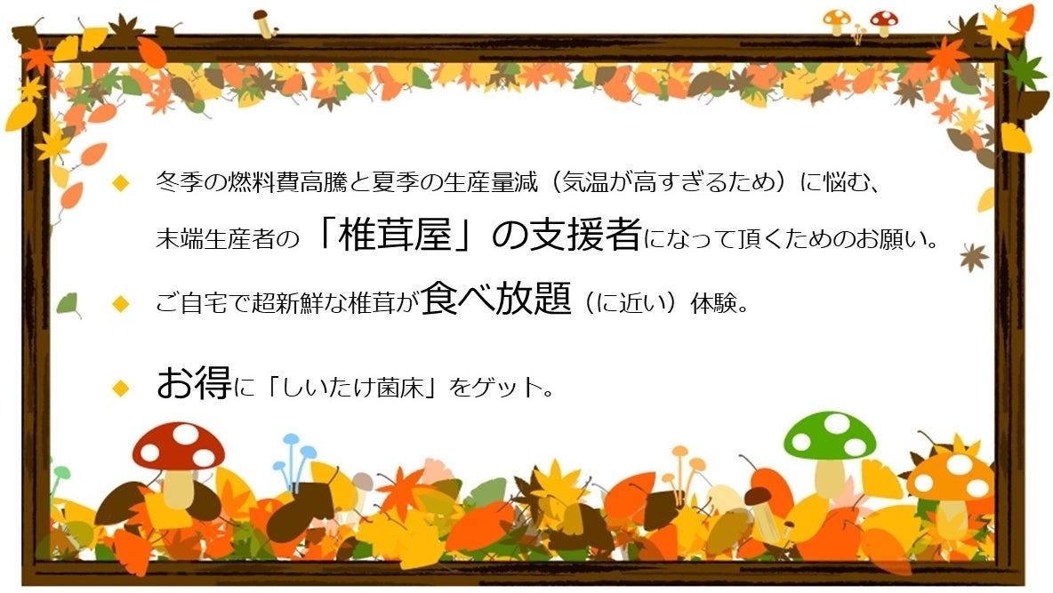 そして、皆様のご支援があれば、今まで通り美味しいシイタケをつくり、