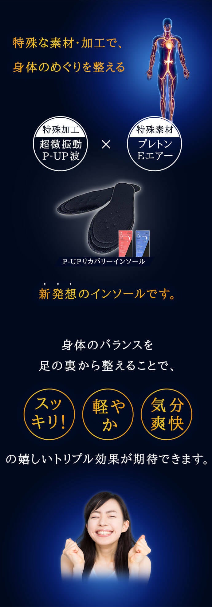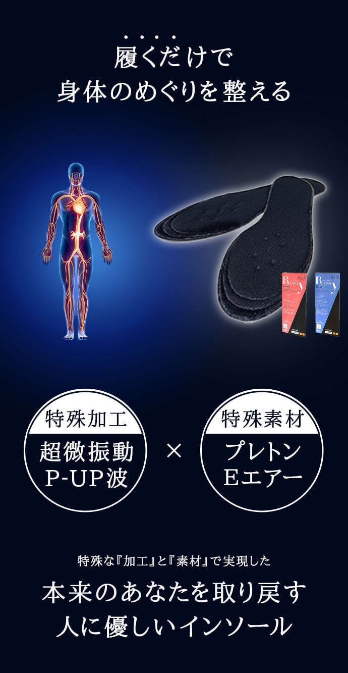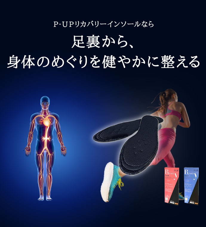 そこで開発したのが、身体のめぐりを健やかに整える『P-UPリカバリーインソール』です。