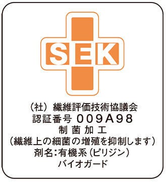 制菌防臭加工、抗ウイルス加工など様々な高機能性繊維製品に対して、機能性及び安全性を第三者試験機関による試験、その試験結果の第三者委員会による評価をもとに、製品認証を行い、SEKマークが提供されます。