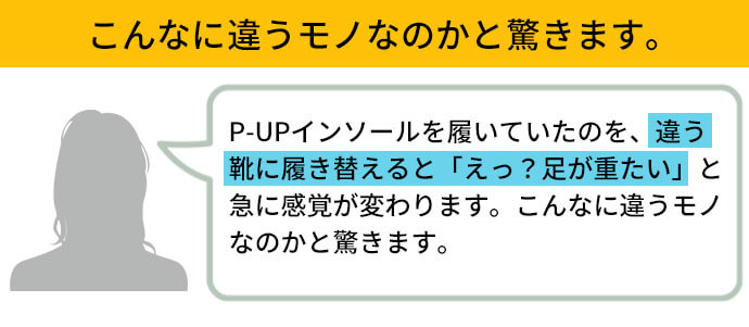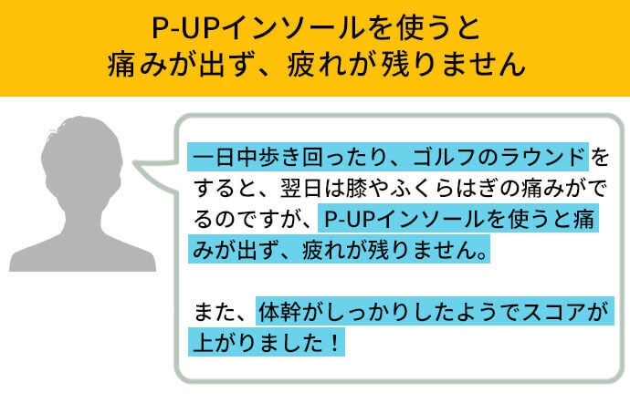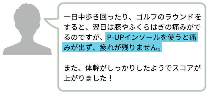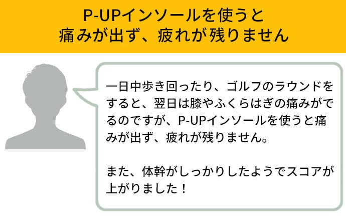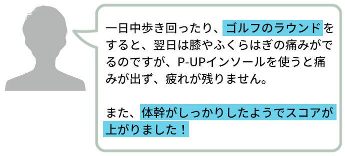 この様に、P-UPリカバリーインソールをご利用いただいた方から、喜びのお声を頂いております。