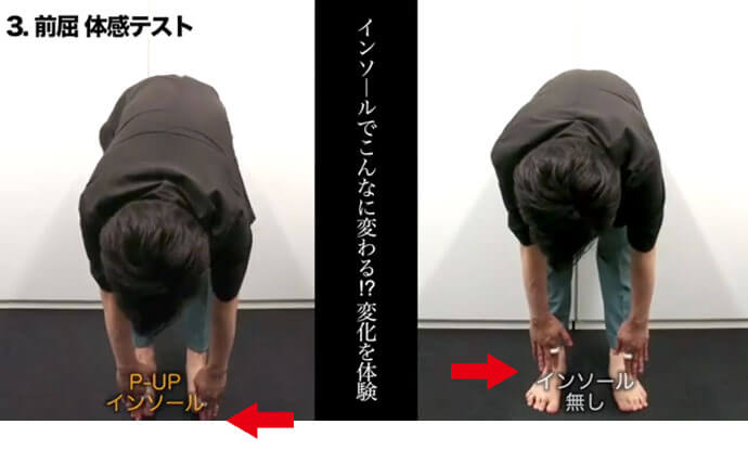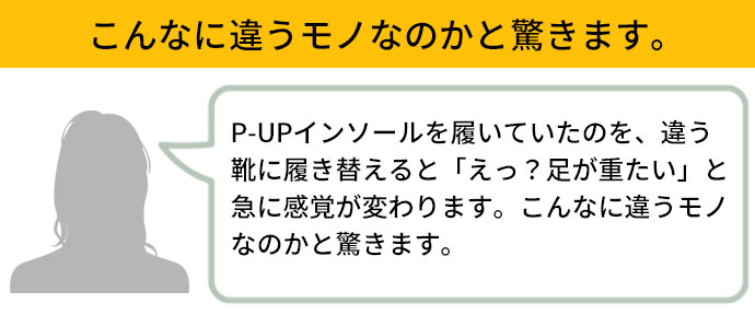 P-UPリカバリーインソールを足の下に敷くだけで、こんな変化を即実感いただけます。