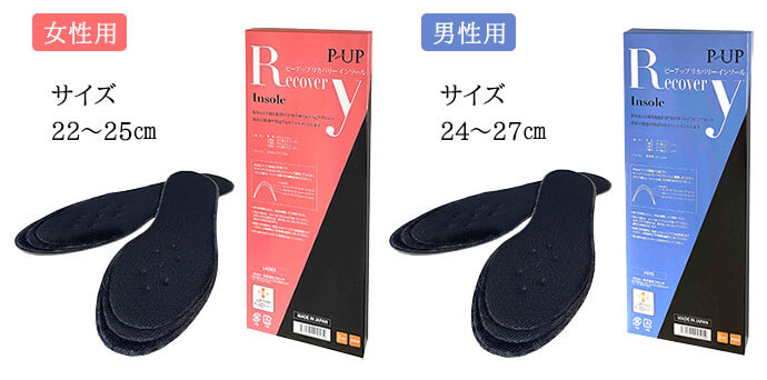 例えば、28cm、29cmの方の場合でも、インソールが足にふれていれば効果を実感していただけるので、27cmのP-UPリカバリーインソールを入れてお使いいただけます。