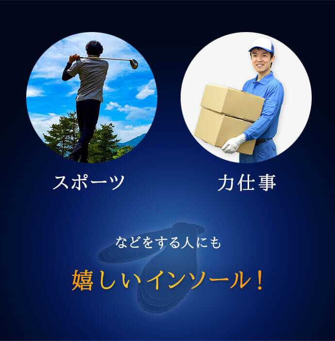 歩き仕事や立ち仕事をしている方は、もちろん、健康のためにウォーキングをしないといけないが、おっくうで続かない・・・という方に試していただきたいインソールです。