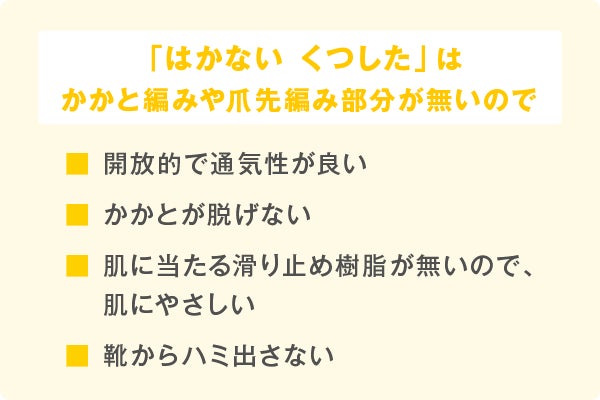 2022/06/28 17:00こんにちは!NAIGAI Lab の遠藤です。今年は早くも6月に梅雨が明け、40℃に近い猛暑エリアも。素足で靴を履きたい、ただ靴にニオイがついて気になる・・・そんな時のためにフットカバーなどの浅履きソックスが誕生しました。かかとがズレないように かかと内側の滑り止めが肌にピッタリ当たる商品もありますが、肌の弱い方はトラブルを起こされるケースもあるようです。そんな ” かかと問題 ” を少しでも解決したいと思ったのが「はかないくつした」を開発した理由のひとつです。今年の猛暑を乗り切るために、この新しいクールスタイルを是非お試しください! もっと見る