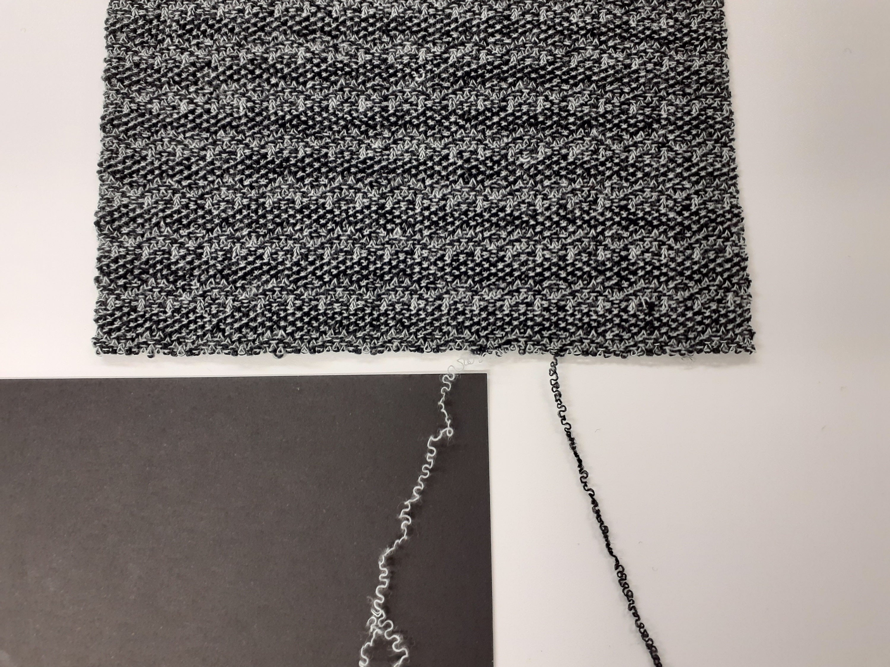 一般的に靴下は、種類の異なる2種類の糸を同時に編立します。