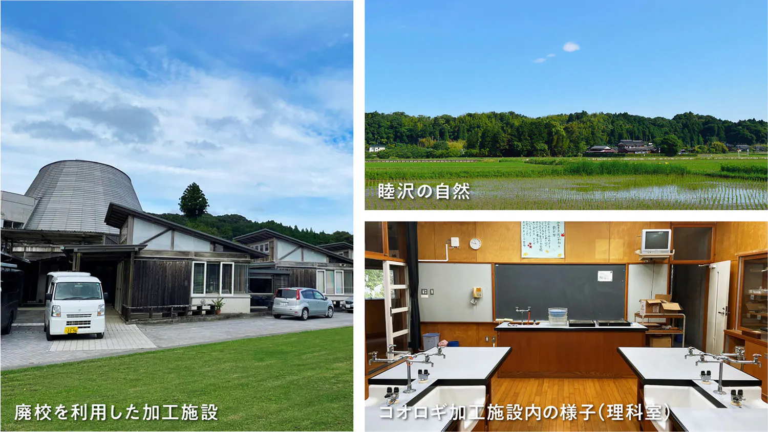 昆虫食をより普及させるために、私たちは周辺の産業が排出する食品廃棄を貰い受けて、コオロギの飼料にする取り組みを考案。自然の恵みが豊かな千葉県の睦沢町に養殖場を設立し、その隣町には廃校を利用した加工施設を作りました。