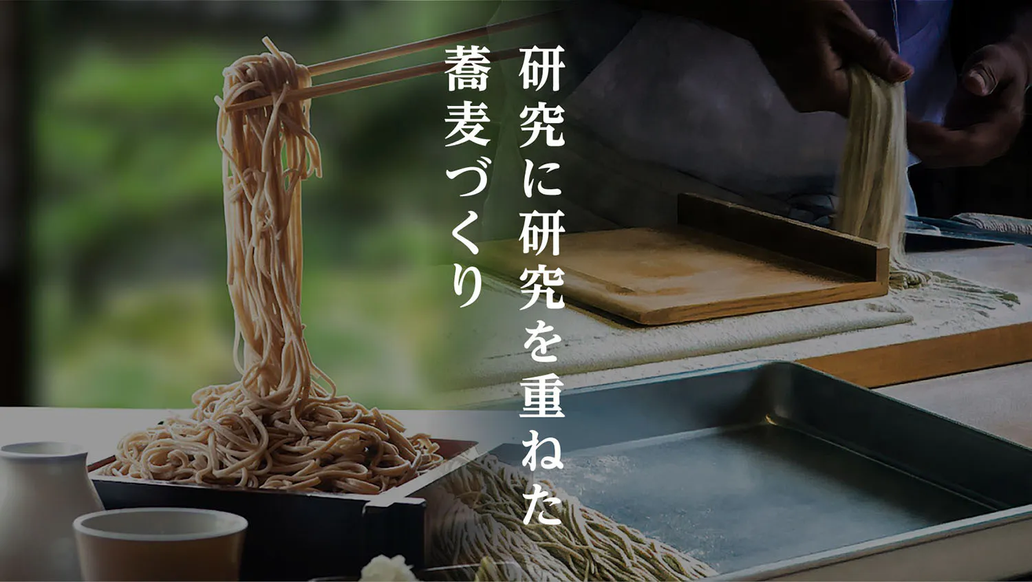 蕎麦のつながりが悪いとボソボソ感や短く切れてしまう蕎麦になります。幾度となく試作を重ね、香りとコシを引き出せる比率を研究しました。