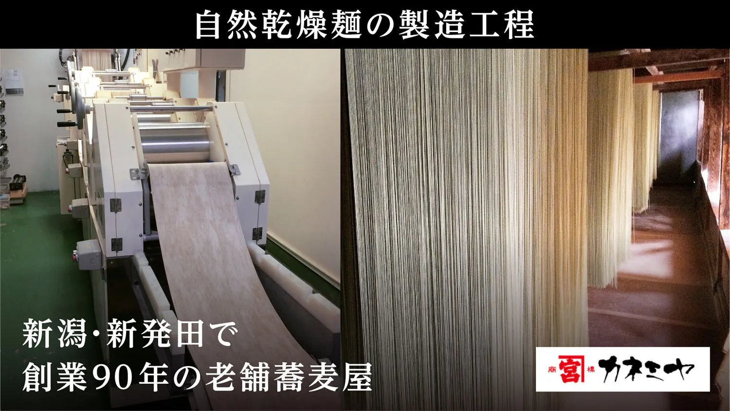 そこで、創業90年の新潟県新発田市の老舗製麺所『カネミヤ』様に製造を依頼。